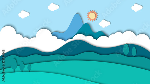 Beauty nature landscape paper art style with cloud background vector illustration