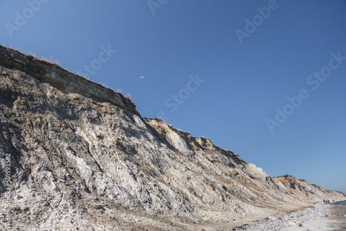 Beauty of big precipice at blu clear sea with stones beach