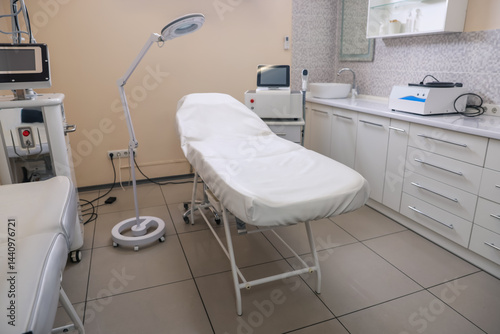 Beauty salon with hair removal equipment and medical couch