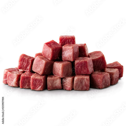 Beef Cubes, Raw Meat, Prepared for Cooking