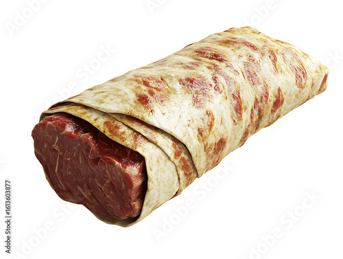 Beef Steak Wrapped in Flatbread on Transparent Background