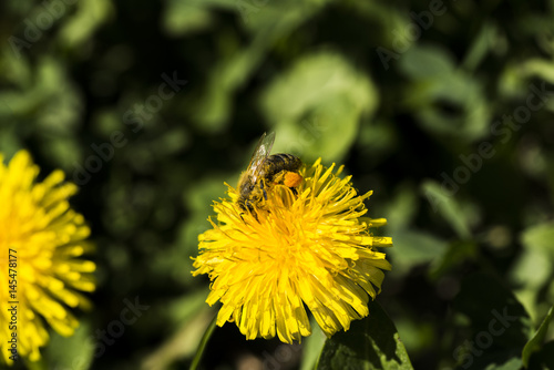 Bees collecting dandelion nectar