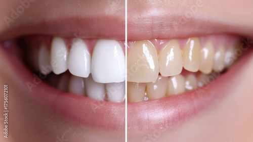 Before and after teeth whitening concept, clean minimal dental background