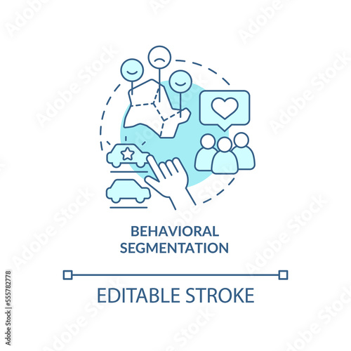 Behavioral segmentation blue concept icons set. Customer. Type of market segmentation abstract idea thin line illustration. Isolated outline drawing. Editable stroke. Arial, Myriad Pro-Bold fonts used