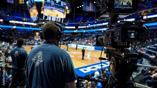 Behind-the-Scenes at a Live Basketball Broadcast in a Bustling Arena
