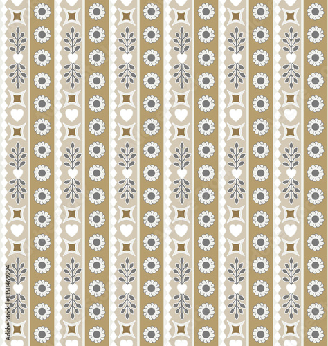Beige and Grey Hearts and Floral Country Cottage Pattern