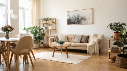 Beige couch in a bright living room