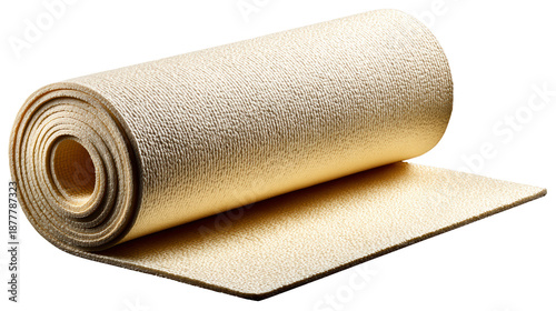 Beige fabric roll on white background close up of beige fabric roll showcasing texture and color against a clean white backdrop ideal for design and craft