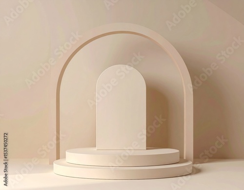 Beige Minimalist Arch Display Stand on Cream Background