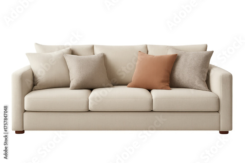 Beige modern sofa decorating living room interior on transparent background