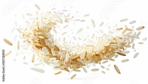 Beige-toned grains forming a swirling curve, isolated on white