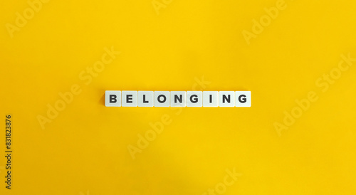 Belonging Word . Text on Block Letter Tiles on Yellow Background. Minimalist Aesthetics.