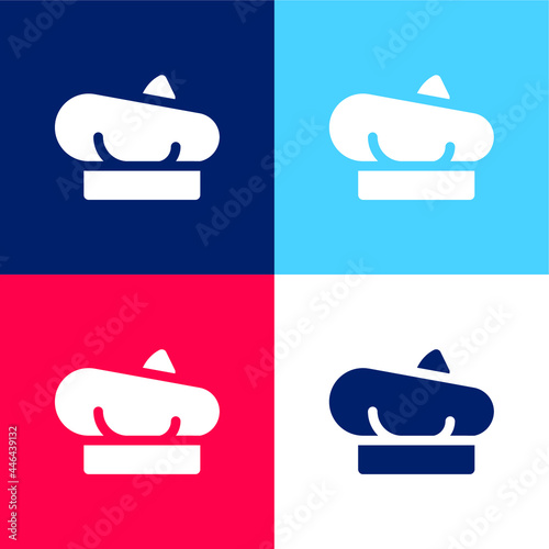Beret blue and red four color minimal icon set