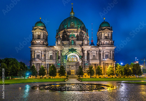 Berlin Cathedral with Lustgarten park at night, Berlin, Germany