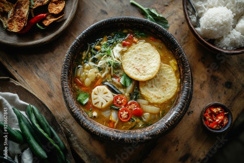 Betawi Vegetable Stew with Rice Cakes, Originating from Jakarta,Top View