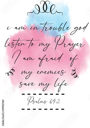 Bible Words " i am in trouble god listen to my prayer i am afraid of my enemies save my life Psalms 64 :2 "