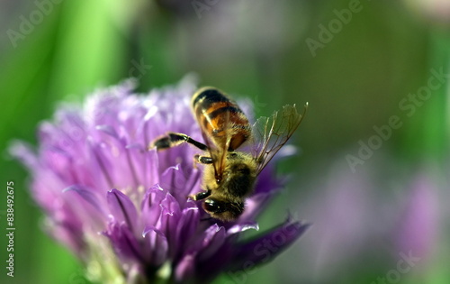 Biene auf einer violetten Schnittlauchblüte