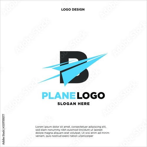 big capital letter B slashed with a paper airplane. aeromode logo vector.