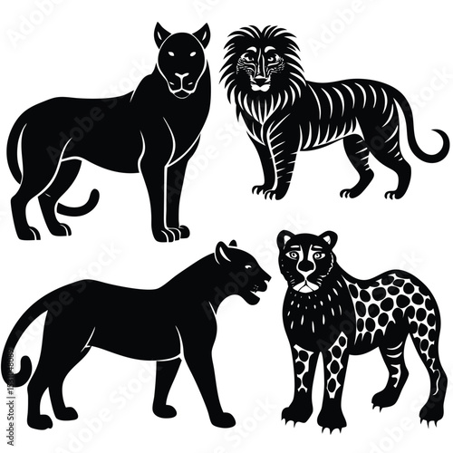 Big Cats Vector Set Lion Tiger Leopard