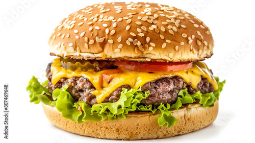 Big classic beef cheeseburger on white background isolated