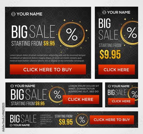 Big, half price and one day sale banners. Vector.