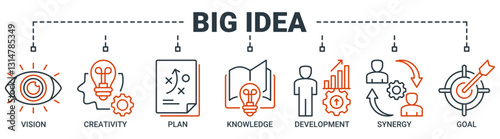 Big idea banner web icon vector illustration concept with icon of vision, creativity, plan, knowledge, development, synergy and goal icons. Outline vector symbol background.