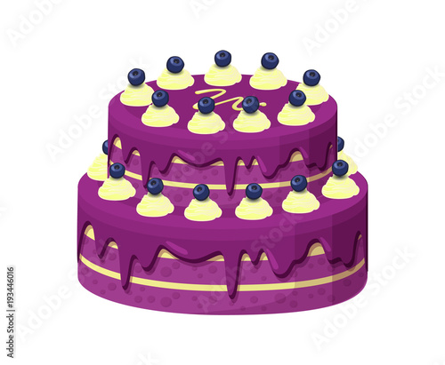 Big Lilac Pie with Berries Vector Illustration