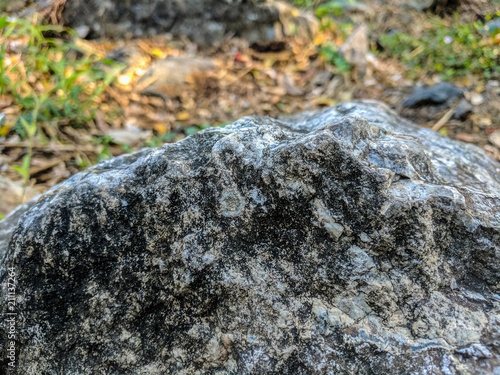 Big stone with blurred background in garden