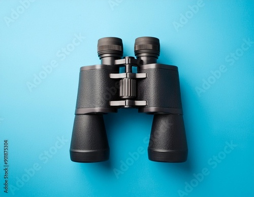 Binoculars on a light blue background Banner Flat lay top view