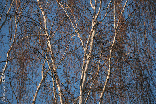 birch branches against the blue sky in early spring. texture