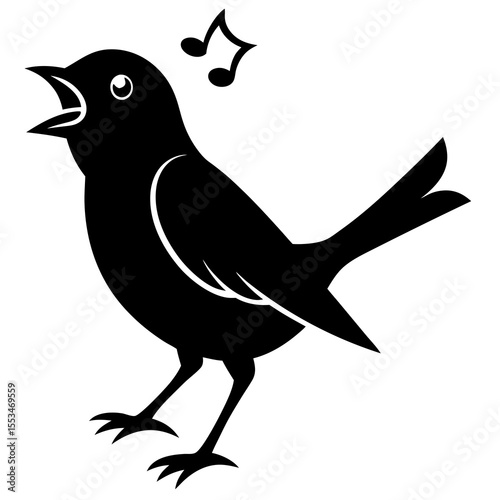 Bird singing perched flat vector silhouette