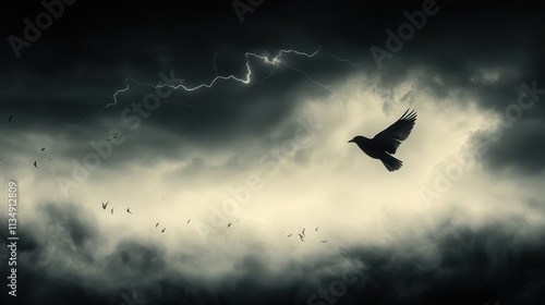 Bird Soaring Through a Stormy Sky