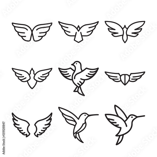 Bird wings logo bundle, creative flying outline vector design pack illustration