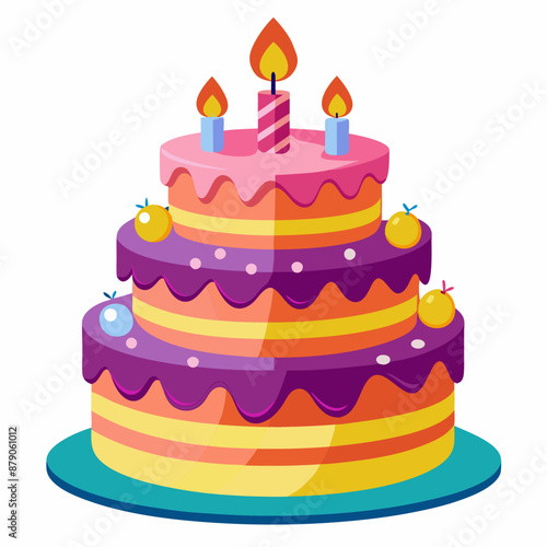 Birthday cake vector illustration, cake birthday cake with candles, vector art, birthday cake Line art, cake silhouette