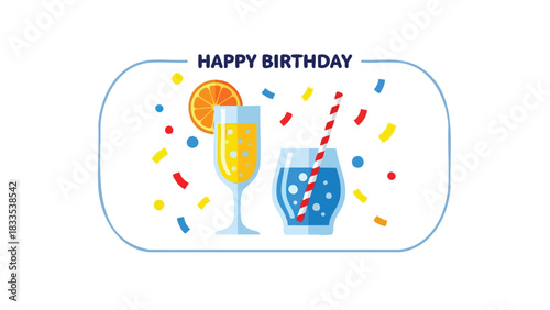 Birthday Celebration Toasting with Festive Drinks and Confetti