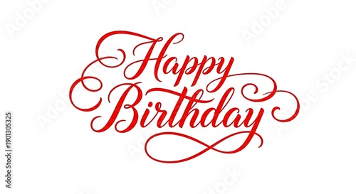 Birthday party classic red "Happy Birthday" elegant script typography for festive celebrations and special occasion greetings.