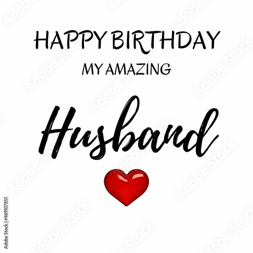 Birthday Wishes for lovely husband. black lettering and heart element typography on white background.