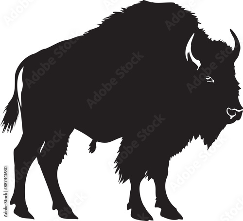 Bison Black Silhouette on white background