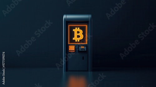 Bitcoin ATM, glowing digital effects, 3D illustration