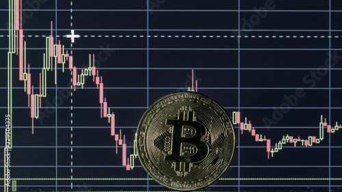 Bitcoin coin on the background graphics close-up