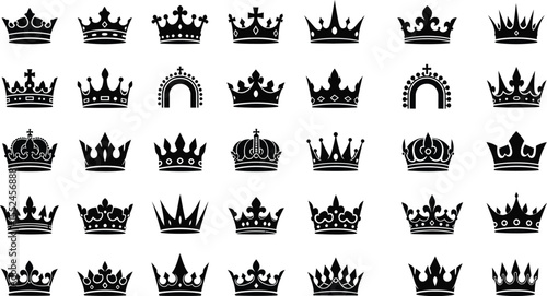 Black & White Crown Icons - Diverse Royal & Regal Collection