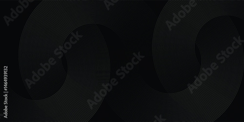 Black abstract background with circle lines. Modern black gray gradient rings. Suitable for banner, cover, poster, website, presentation, brochure, flyer, header