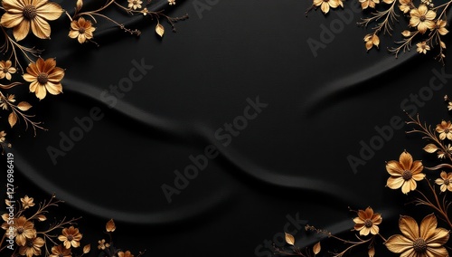 Black and Gold Floral Frame. Elegant Decorative Background. Excellent for luxurious invitations, elegant event cards, stylish website backgrounds