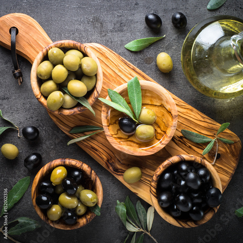 up high, background, black, bowl, closeup, cooking, dark, eating, european, food, fresh, fruit, greek, green, italian, leaf, mediterranean, natural, oil, olive oil, olive, overhead, raw, slate, stone, table, top, traditional, tree, vegetable, view, wooden