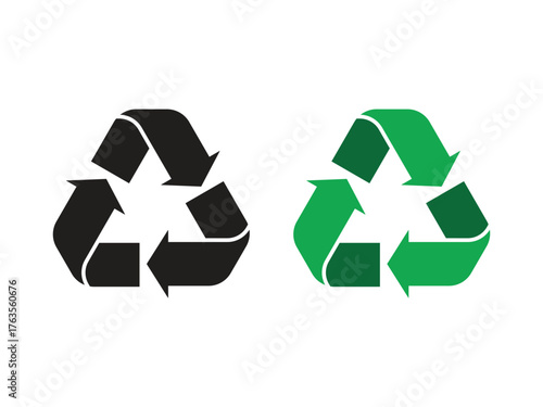 Black and Green Recycling Symbols Vector – Eco-Friendly Reduce Reuse Recycle Icons
