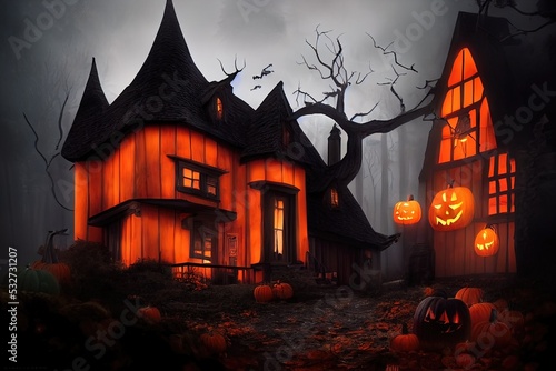 Black and orange house with Halloween theme, 3d render
