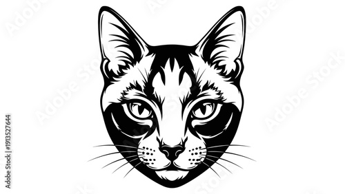 Black and White Cat Face Portrait, Stylized Graphic Illustration