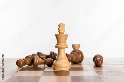 black and white chess figures on chessboard isolated on white