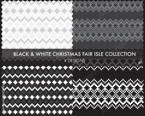 Black and White Christmas Fair Isle Seamless Pattern Collection
