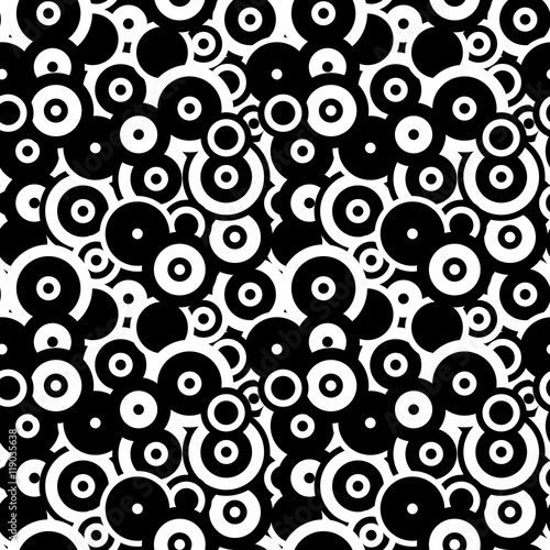 Black and white circles, abstract seamless pattern